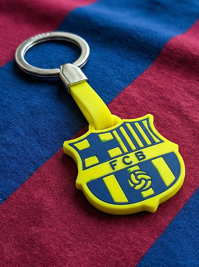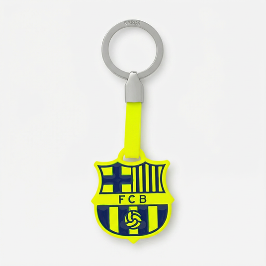 Kľúčenka s fluorescenčným žltým erbom FC Barcelona, oficiálny licencovaný produkt Barçy.